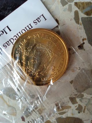 Moneda conmemorativa , bañada en oro.100 pesetas.