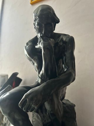 Escultura en bronce – El Pensador (Rodin) – 40 cm Escultura en bronce macizo de El Pensador, reproducción de la obra original de Auguste Rodin. • 📏 Altura: 40 cm • ⚖️ Peso: 11 kg • 🔩 Material: Bronce macizo (imán no se pega) • 🪨 Base: Mármol • ✍️ Firma: “A. Rodin” • 📦 Estado: Muy bueno, pátina original Pieza sólida y pesada, de gran calidad y presencia. Ideal para decoración, despacho o colección. 👉 Reproducción, no es un original de museo.