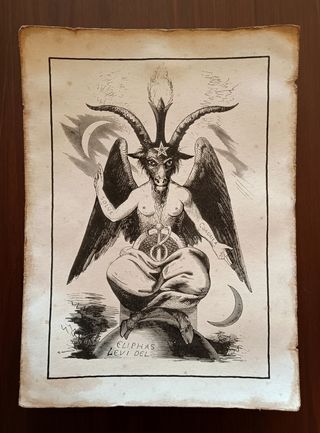 Reproducción de la figura de Baphomet dibujada por el ocultista Eliphas Levi en 1854, impresa en papel de buena calidad envejecido a mano. 22x30 cm.