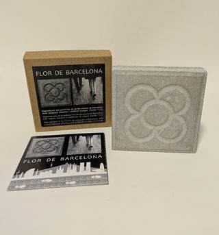 Reproducción artesanal del icónico panot Flor de Barcelona, símbolo de las aceras de la ciudad. Incluye reseña histórica y certificado de origen. a escala 1:2,2, 9x9cm. - Diseño inspirado en las baldosas originales. - Escala 1:2,2.