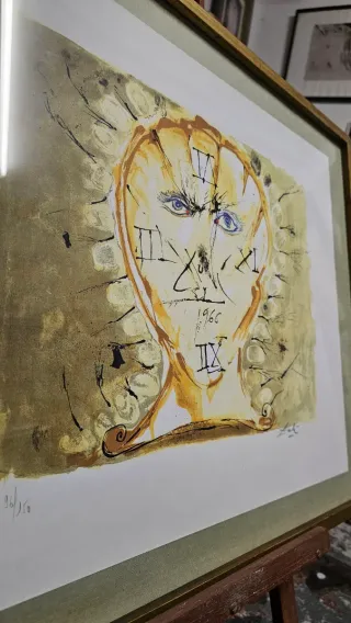 Copia de litografia de Salvador Dalí, titulada Autorretrato Reloj de sol. - Año: 1966. Numerado 96/150 Se encuentra enmarcado con cristal. Detras hay un recorte de la La Vanguardia con la publicación de la exposición de Dali en 1972 y se envia la invitación original de la exposición Dali en Ianua. Medida 70 x 55 cuadro Lamina 57x 45 cm Tags: miro, dali, brossa, pere jaume, Guinovart, subirachs, Tharrats, Picasso, tapies, Zush evro, dali, miro, tapies, antigüedad