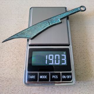 Moneda cuchillo China S. 600-200 A.C. bronce. REPRODUCCIÓN. Moneda cuchillo 刀幣, fundición de bronce – REPRODUCCIÓN - fue producida por varios gobiernos y reinos en la antigua China, hace aproximadamente 2500 años. Dimensiones aprox: 13,5 cm, x 1,5 cm. X 3 mm. peso: 19.03 gr. NO LEER: LEER: Japón, samurái, catana, Edo, oro, plata, lingote, kilo. Britannia, Filarmónica, Maple, Krugerrand, Eagle, Panda, libertad, Canguro, Kookaburra, Beasts, Bitcoin, Dragón, Wombat, Arca, Lunar, Píxel, iPhone, Samsung, Versace, Luis Vuitton, Hermes, Casio, Seiko, Nancy Aitana, Taylor Swift, Sonny Angels, Nintendo Switch, Zelda, Juego, Consola, Bimba.