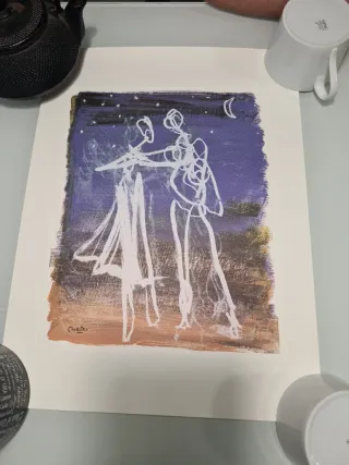 Reproducción de una obra original de Ruestes. La obra representa una escena nocturna con figuras danzantes. - Edición numerada del original. - Firmada por el artista. - n° 00496 - 23 x30 cm