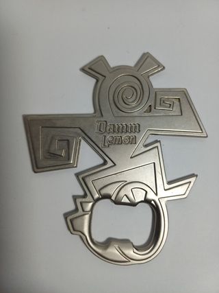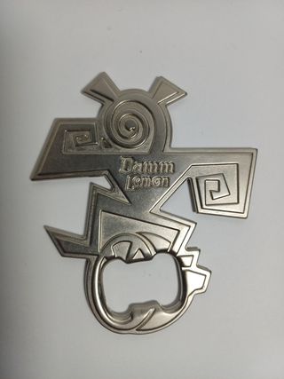 Abrebotellas Damm Lemon promocional 2004–2006 Abrebotellas oficial Damm Lemon de campaña publicitaria de mediados de los 2000. Modelo metálico fundido con diseño tribal y limón integrado en la boca del abridor. Pieza promocional distribuida en acciones de verano y hostelería. • Metal macizo • Diseño en relieve • Campaña 2004–2006 • No es reproducción actual Objeto interesante para colección de merchandising cervecero español que no vas a encontrar porque se hicieron muy pocos. No negociable. Si me pides un lote, lo hablamos.