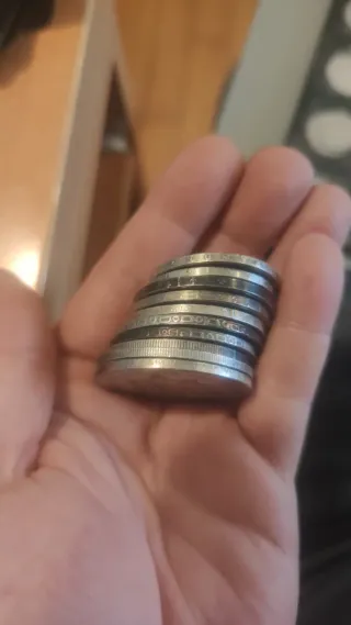Monedas falsas que encontré en la colección de plata de mi abuelo, se pegan a un imán, no son de plata, no se mucho más sobre ellas.