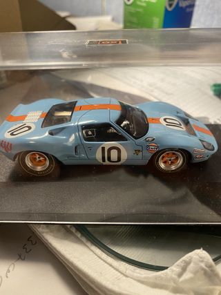 Réplica del Ford GT40 Gulf 10, ganador de Le Mans en 1968. 1/64 .Marca Ixo Models. Descatalogado. Escala aproximada 1/43. Replica de altisima calidad de reproduccion.