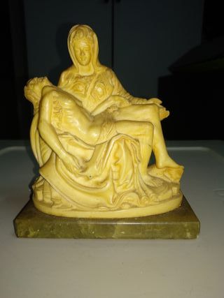 Reproducción de la famosa escultura La Piedad de Miguel Ángel. Una pieza clásica para coleccionistas. - Réplica detallada de la obra maestra. - Base de mármol verde.