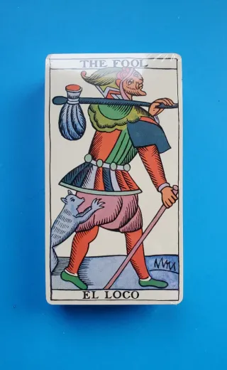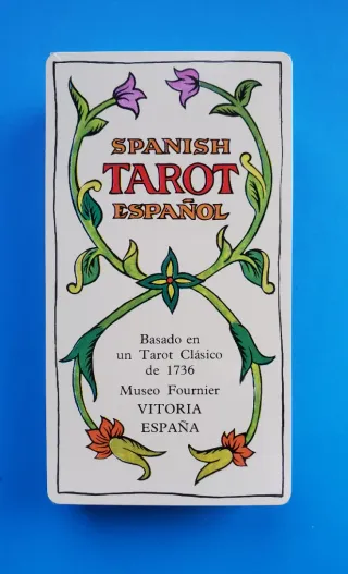 Tarot / Baraja FOURNIER Bilingüe. Cartas precintadas, la caja tiene evidentes signos de desgaste por mal almacenamiento. Con instrucciones. Reproducción de un tarot del año 1736. Se venden de tal y como se muestra. Envío solo por Correos Certificado ,coste 7.50 euros aparte a cargo del comprador. NO ENVIO POR WALLAPOP. Pago por transferencia.