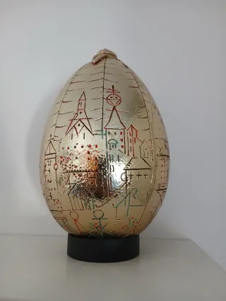 Réplica del Huevo dorado de la saga de Harry Potter. Se trata de una fiel reproducción a tamaño real de unos 23cm. Pieza coleccionista. Su acabado dorado le da un toque elegante. Diseño detallado con escenas y figuras. Base negra para exhibición. Cuidado hasta el más mínimo detalle. Fabricado en resina de alta calidad con acabados pintados a mano.