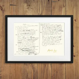 Pieza de colección única. Reproducción de la primera versión de la canción Bio tal y como la escribió Alejandro Sanz en su cuaderno de canciones. Firmada por el reconocido artista. Un artículo especial para los amantes de la música y el arte. - Firma original del artista. - Lámina exclusiva. Tamaño de lámina y passepartout 70 x 50 cm. Dimensiones de facsímil 55 x 35,5 cm Es casi del tamaño de una cartulina.