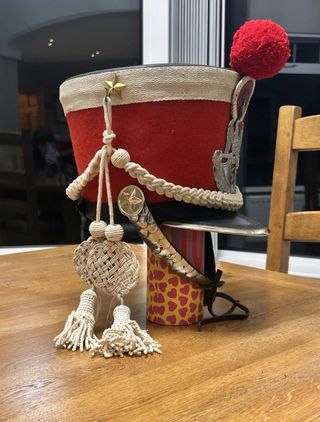 Reproducción de alta calidad del chacó (kiver) del ejército napoleónico de la época del Primer Imperio. Talla 58-60. Complementará perfectamente cualquier interior histórico.