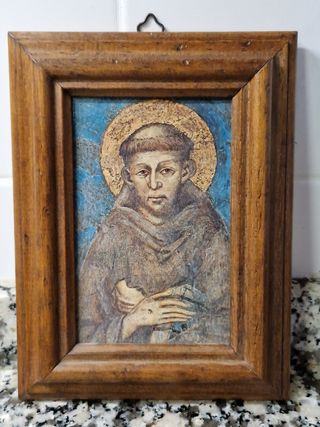 Reproducción del retrato San Francisco de Asís de 1278, Cimabue, Basílica de San Francisco, Asís. Esta copia es muy bella para decorar cualquier espacio de tu casa. Viene ya con el gancho para colgarlo. La imagen es una estampa. El marco es de madera.
