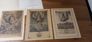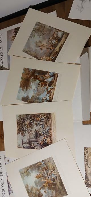 Conjunto de reproducciones de láminas antiguas. - Incluye varias láminas. - Reproducciones de imágenes religiosas y escenas históricas. - Papel de calidad con aspecto envejecido.