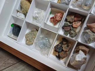 Se vende lote de minerales y rocas variadas, ideal para coleccionistas o aficionados a la geología. Cada pieza está etiquetada. - Variedad de minerales y rocas. - Cada espécimen con su etiqueta identificativa. Hay una caja no etiquetada