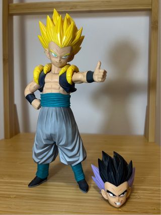 Figurita de acción de Gotenks, con dos cabezas intercambiables, de Dragon Ball Z. Comprada en la tienda Banpresto. Mide 21cm. Tengo más figuritas de Dragon Ball, si interesa hago pack.