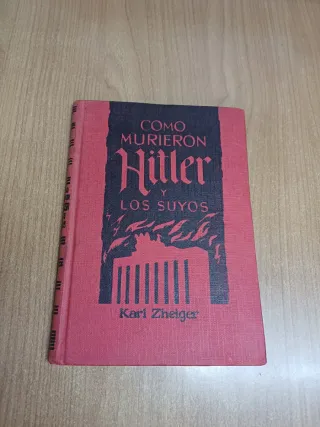 Libro Como murieron Hitler y los suyos de Karl Zelger. - Portada de tela en color rojo. - Diseño de portada en color negro con texto y silueta.