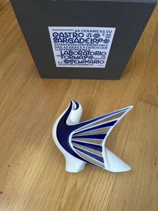 Figura decorativa de una paloma de Sargadelos. Representa la artesanía gallega. - Diseño inspirado en la naturaleza. - Acabado en blanco con detalles en azul y dorado.