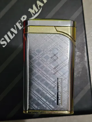 Elegante mechero de la marca Silver Match con detalles en oro y plata. Su diseño presenta un patrón de líneas cruzadas. - Acabado bicolor: plata y oro. - Diseño con patrón de líneas.
