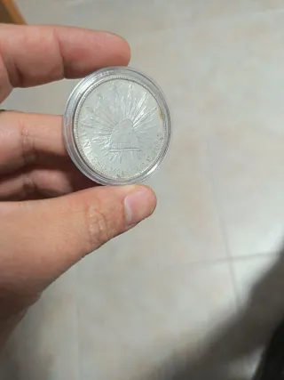Moneda de plata valor facial de Un Peso de México, acuñada en el año 1908. Ceca de México. Plata 902,7 Peso 27.0730 g Diámetro 38.5 mm Ebc+ brillo original