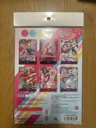 Colección de cartas premium de One Piece con temática de Uta. Ideal para coleccionistas y fans del juego de cartas. - Producto oficial de Bandai Namco. - Incluye arte de Uta. - Para mayores de 9 años. - Fabricado en Japón.