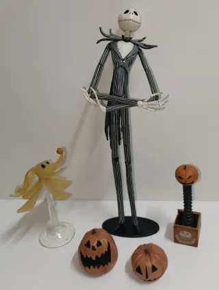 Colección de figuras inspiradas en la película Pesadilla antes de Navidad de Tim Burton. Se trata de Jack Skellington, el fantasma Zero y tres calabazas. The Nightmare Before Christmas - Touchstone Pictures, Disney.