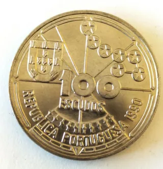Moneda 100 Escudos 1991 Portugal Conmemorativa de la navegación astronómica. Ref. 755