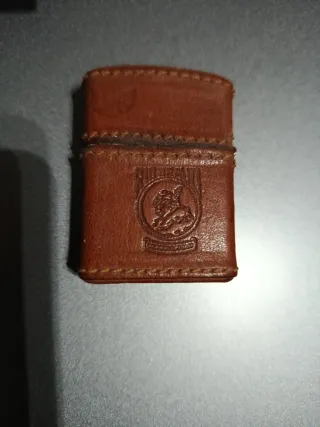 mechero Zippo con Funda de cuero marrón para Proteger tu mechero con estilo. - Material: Cuero genuino. - Color: Marrón. - Diseño: Con emblema grabado. - funciona