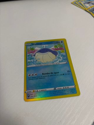 Carta Pokémon de Wailmer del año 2020. Es una carta brillante. - Tipo: Básico - Número: 320 - Ataque: Bomba de agua - Ilustrador: Yukiko Baba - Código: 018/100 C