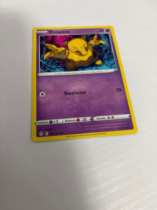 Carta Pokémon de Drowzee, edición básica. - Número de carta: 061/203. - Ataque: Destructor. - HP: 70. - Debilidad: x2. - Resistencia: -30. - Coste de retirada: 10.