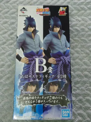 Figura de Sasuke Uchiha de la serie Naruto, parte de la celebración del 20 aniversario. - Modelo B de la colección Ichiban Kuji. - Incluye una de las dos versiones de figura de Sasuke con diferentes expresiones. - Fabricado por Bandai Spirits.