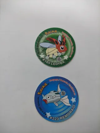 Lote de 2 tazos de Pokémon. - Tazo de Ledyba, número #165. - Tazo de Remoraid, número #223. - Incluyen pegatinas.