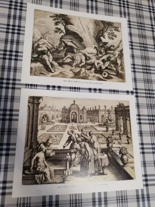 Conjunto de dos láminas con grabados del artista Matthaüs Merian (1593-1650). Medidas 28 x 22 cms. - Grabado de la Conversión de San Pablo - Grabado de David y el baño de Bet-Sabé Entrega en Ripollet y Bcn, hago envíos por Wallapop. Visita mi perfil, hay muchos más artículos y oportunidades.