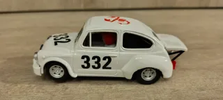 Coche de Scalextric en color blanco con el número 332. Coche usado y con faltas. Paso de rueda tocado Funcionando correctamente. - Diseño de coche de carreras. - Detalles plateados en faros y parrilla.