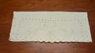 Precioso guardapeines de tela con bordado. - Diseño con la palabra PEINES bordada a mano. - Borde festoneado con pequeños ojales. - Detalle floral central. - Adornos de puntos y hojas.