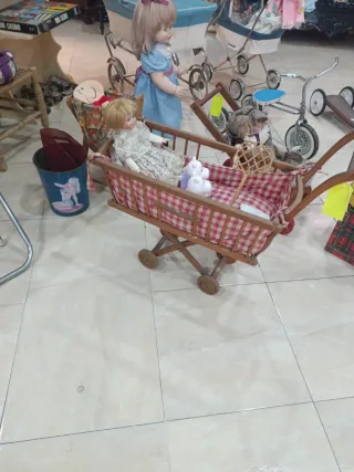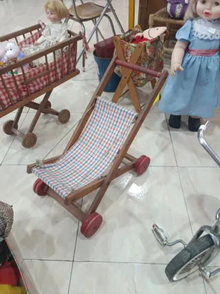 Cochecito de muñecas antiguo de madera