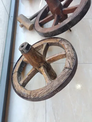 Conjunto de ruedas antiguas de madera, ideales para decoración o proyectos.40 e cada unidad ,las cuatro 150 - Diseño rústico. - Material: Madera.