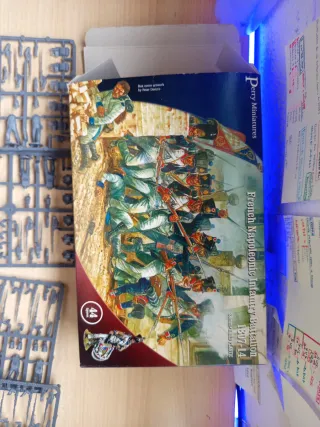 Maqueta de la infantería de línea francesa de la época napoleónica, de Perry Miniatures. Incluye 42 figuras de plástico duro a escala 28mm. - Caja de artwork de Peter Dennis. - Figuras de plástico duro a escala 28mm. - Set de 42 figuras.