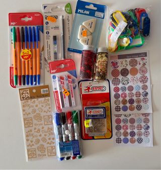 Lote Papelería: Bolígrafos, Gomas, Pegatinas