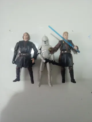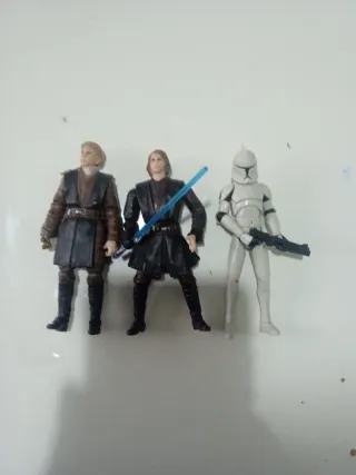 Lote de figuras de Star Wars. - Figura de Anakin Skywalker con sable de luz. - Figura de Anakin Skywalker con túnica. - Figura de Clone Trooper con rifle.