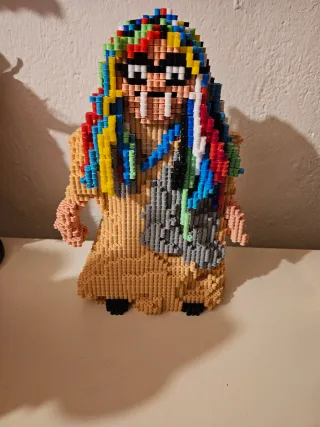 Figura decorativa hecha a mano con cuentas Hama Beads. - Diseño de bruja. - Incluye figuras adicionales. - Colores vibrantes.