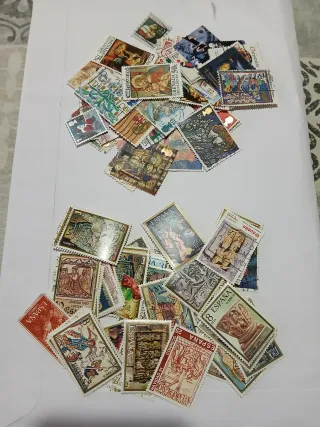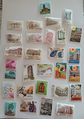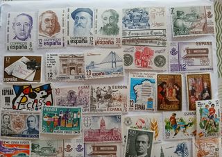 Colección de sellos de España. El lote incluye una gran variedad de sellos: de castillos y monumentos, uniformes militares, animales, trajes típicos, pintores, día del sello, Franco, Juan Carlos....Más sellos en mi perfil.