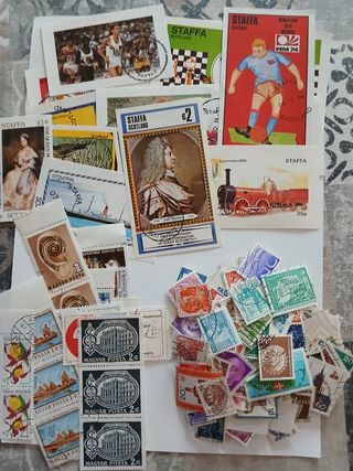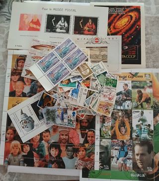 Colección de sellos postales de diferentes países y épocas. Incluye 6 hojas bloque y 250 sellos. Más sellos en mi perfil.