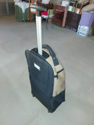 Macuto de estilo militar en tonos caqui y negro. Diseñado para ser resistente y funcional. - Compartimento principal espacioso. - Bolsillos exteriores adicionales. - Asas y correas para sujeción.