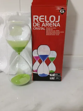 Elegante reloj de arena de cristal. Perfecto para medir el tiempo de forma decorativa. - Material: Cristal - Duración: 10 minutos - Medidas: 16.5 cm de alto