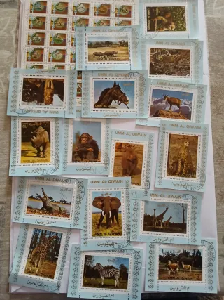 Colección de 50 hojas bloque y hojitas de Emiratos Árabes. Incluye sellos de los Juegos Olímpicos de Munich 72 y de Umm Al Qiwain. - Sellos de Umm Al Qiwain con imágenes de animales y escenas. - Sello conmemorativo de los Juegos Olímpicos de Munich 72. - Sellos de Ras Al Khaimah con monumentos y retratos. - Sello conmemorativo De Gaulle Memorial. Más sellos en mi perfil.