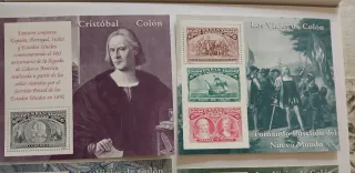 Conjunto de hojas bloque dedicadas a Los Viajes de Colón - Representaciones de Cristóbal Colón y sus expediciones. - Imágenes de eventos históricos como la toma de posesión del Nuevo Mundo y la solicitud de apoyo real. Más sellos en mi perfil.