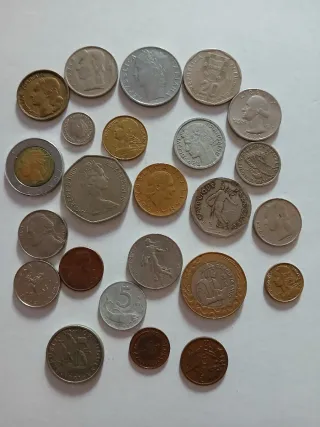 Lote de 24 monedas extranjeras diferentes de Francia, Italia, Portugal, Estados Unidos...Más monedas en mi perfil.