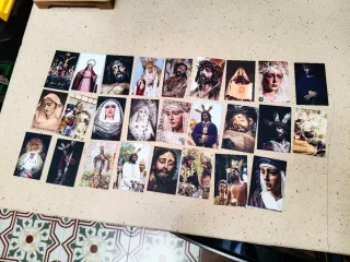 Conjunto de estampas religiosas de la Semana Santa. - 0.25€ la unidad -Tamaño (5.5cm x 8.5cm) doble cara mate - Imágenes de Semana Santa. - Motivos religiosos variados. - Perfectas para coleccionistas o devotos.