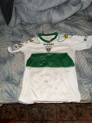 Camiseta del Elche C.F. firmada por jugadores de la temporada del récord. - Diseño oficial de la equipación. - Firmas de varios jugadores en la parte frontal. - Escudo del club bordado. -TALLA L