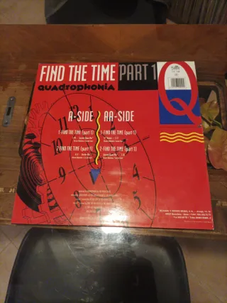 Vinilo de Quadrophonia, Find The Time Part 1.. Año 1991. Escucho ofertas. Si buscas algún vinilo especial pídemelo. - Portada con diseño de reloj y elementos gráficos. - Incluye etiqueta Techno. - Estilo blanco y negro.